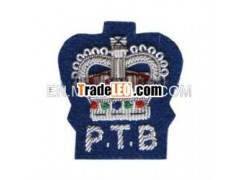 1) Hand Embroidered Bullion Crests are widely used asidentification marks on a uniform often containingthe insignia of an organization,which is presented or displayed to indicate some feat of service, aspecial accomplishment, a symbol of authority granted by taking anoath (e.g., police and fire), a sign of legitimate employment orstudent status, or as a simple means of identification. They arealso used in advertising, publicity, and for brandingpurposes.